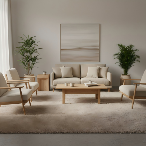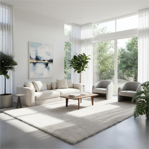 This year’s palettes gravitate toward tranquility—tones of sand beige, misty white, ash grey, and weathered taupe dominate. A neutral shaggy rug is more than color; it’s the quiet balance that ties contrasting materials together—linen, oak, leather, or stone. Within Japandi and Nordic-inspired interiors, such tones whisper calmness into every corner.