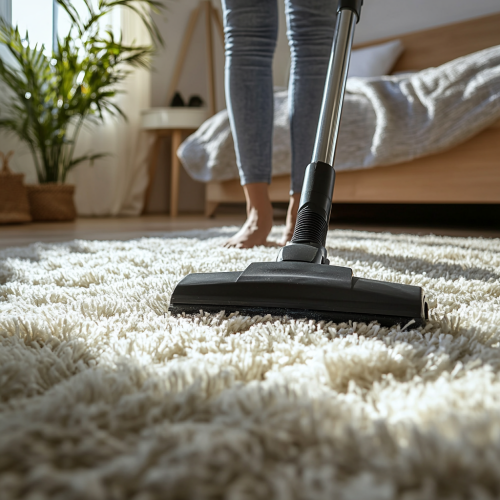 Vacuum the Right Way: Vacuum 1–2 times weekly using the high-pile setting or with the beater bar turned off. A rotating brush can pull or damage long fibers. For a large shaggy rug for bedroom, move the vacuum along the pile direction.